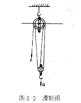 滑轮组由于有省力的功能,线路施工经常应用,其作用力P和牵引重物Q之间关系可用下式表示。